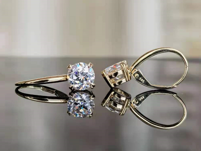 The center stone of picture is 1ct(6.5mm)/per GH color moissanite. Earring setting is 14k white/yellow gold.