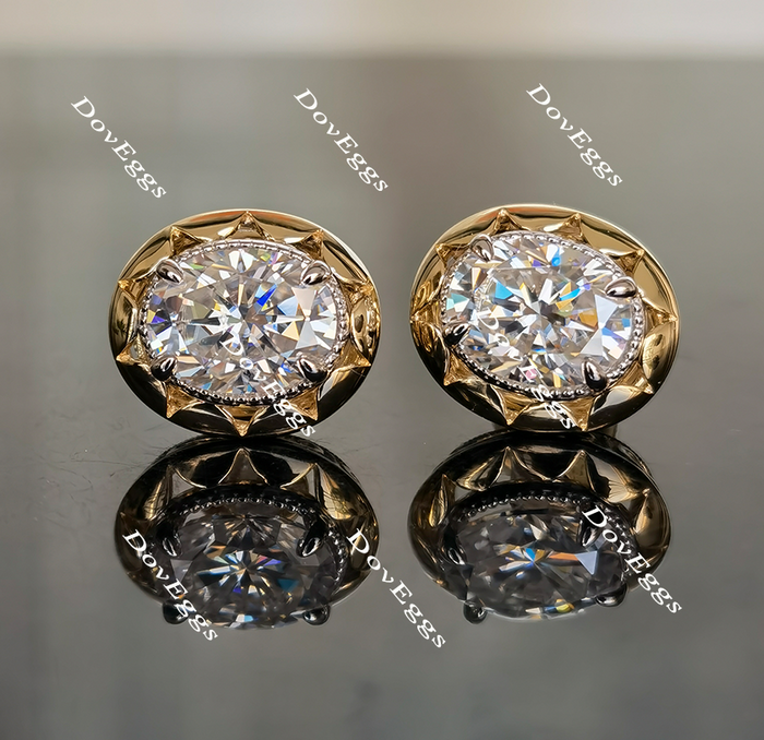 Doveggs flower shape oval moissanite stud earrings for women