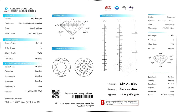 NGIC Certificate #: NP328110543(We will ship the lab-grown diamond to you along with the NGIC certificate. You can scan the barcode on the report to access the third party certificate.)