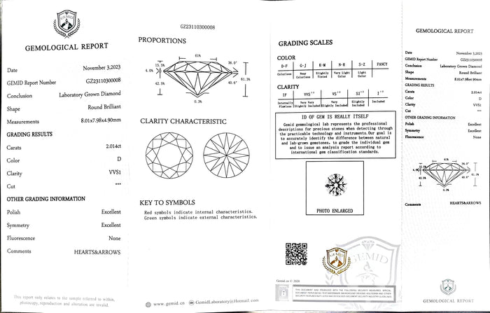 GEMID Certificate #: GZ23110300008(We will ship the lab-grown diamond to you along with the GEMID certificate. You can scan the barcode on the report to access the third party certificate.)