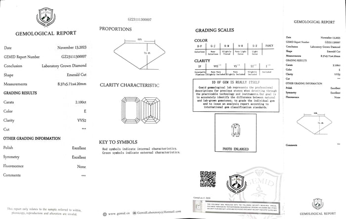 GEMID Certificate #: GZ23111300007(We will ship the lab-grown diamond to you along with the GEMID certificate. You can scan the barcode on the report to access the third party certificate.)
