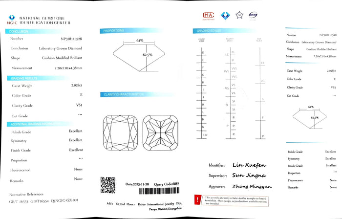 NGIC Certificate #: NP328110528(We will ship the lab-grown diamond to you along with the NGIC certificate. You can scan the barcode on the report to access the third party certificate.)