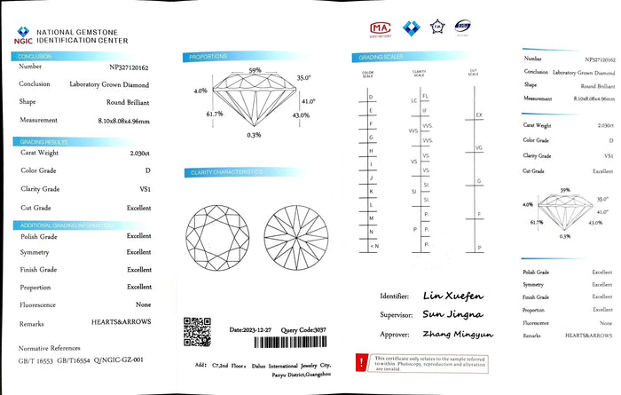 NGIC Certificate #: NP327120162(We will ship the lab-grown diamond to you along with the NGIC certificate. You can scan the barcode on the report to access the third party certificate.)