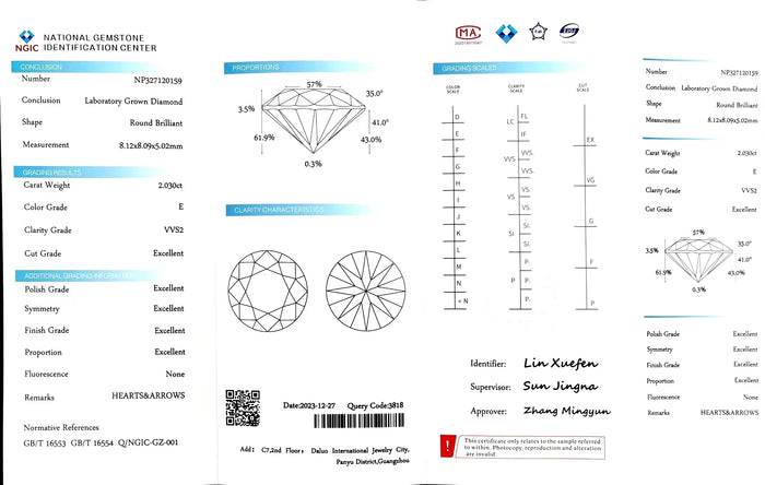 NGIC Certificate #: NP327120159(We will ship the lab-grown diamond to you along with the NGIC certificate. You can scan the barcode on the report to access the third party certificate.)