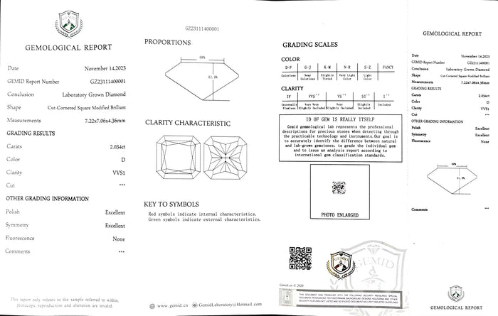 GEMID Certificate #: GZ23111400001(We will ship the lab-grown diamond to you along with the GEMID certificate. You can scan the barcode on the report to access the third party certificate.)