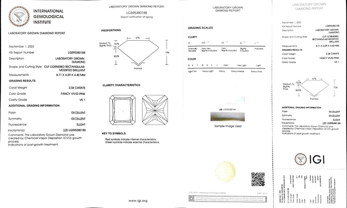 IGI Certificate #: LG595380188(We will ship the lab-grown diamond to you along with the IGI certificate. You can scan the barcode on the report to access the third party certificate.)
