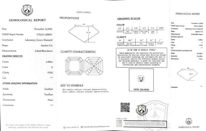 GEMID Certificate #: GZ23111300021(We will ship the lab-grown diamond to you along with the GEMID certificate. You can scan the barcode on the report to access the third party certificate.)