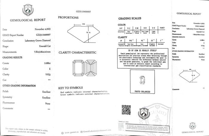 GEMID Certificate #: GZ23110400007(We will ship the lab-grown diamond to you along with the GEMID certificate. You can scan the barcode on the report to access the third party certificate.)