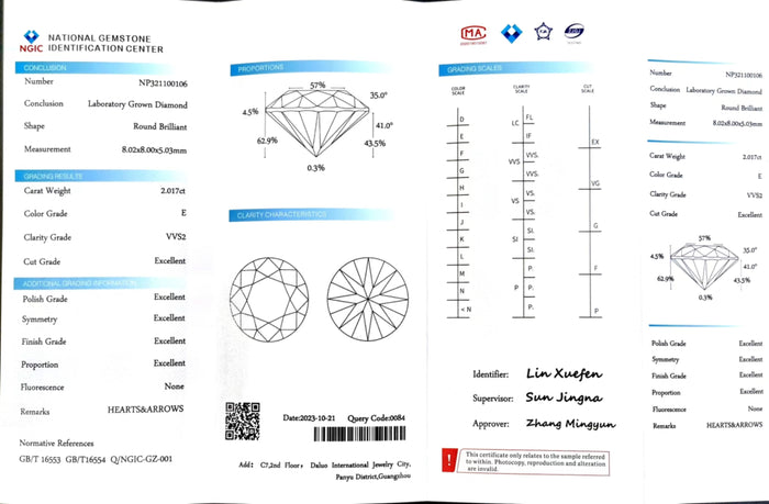 NGIC Certificate #: NP323100106 (We will ship the lab-grown diamond to you along with the NGIC certificate. You can scan the barcode on the report to access the third party certificate.)