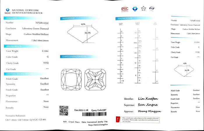 NGIC Certificate #: NP328110332(We will ship the lab-grown diamond to you along with the NGIC certificate. You can scan the barcode on the report to access the third party certificate.)