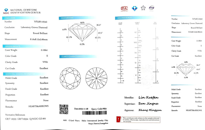 NGIC Certificate #: NP328110542(We will ship the lab-grown diamond to you along with the NGIC certificate. You can scan the barcode on the report to access the third party certificate.)