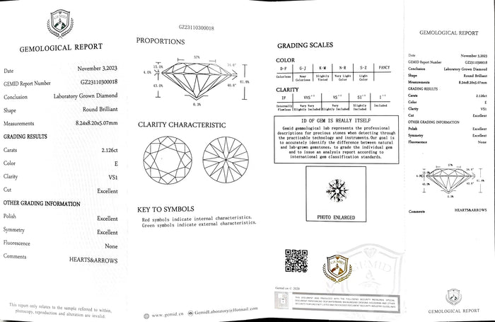 GEMID Certificate #: GZ23110300018(We will ship the lab-grown diamond to you along with the GEMID certificate. You can scan the barcode on the report to access the third party certificate.)