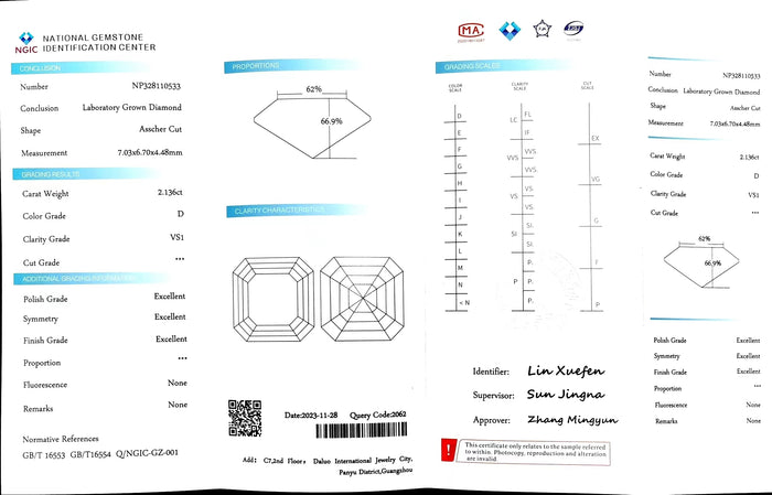 NGIC Certificate #: NP328110533(We will ship the lab-grown diamond to you along with the NGIC certificate. You can scan the barcode on the report to access the third party certificate.)