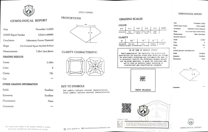 GEMID Certificate #: GZ23111400002(We will ship the lab-grown diamond to you along with the GEMID certificate. You can scan the barcode on the report to access the third party certificate.)