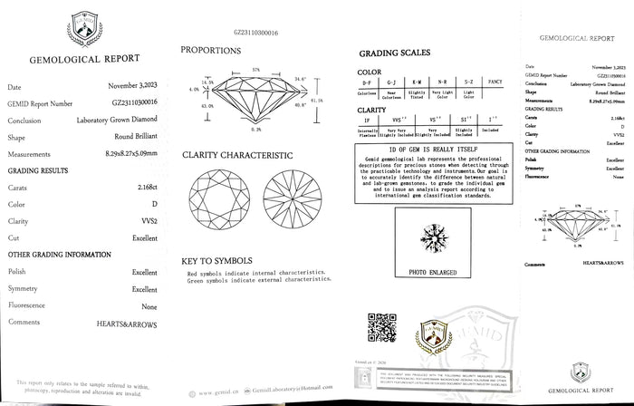 GEMID Certificate #: GZ23110300016(We will ship the lab-grown diamond to you along with the GEMID certificate. You can scan the barcode on the report to access the third party certificate.)