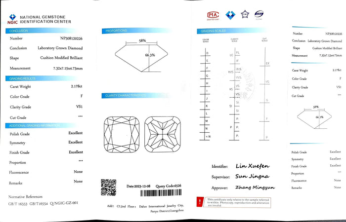 NGIC Certificate #: NP308120226(We will ship the lab-grown diamond to you along with the NGIC certificate. You can scan the barcode on the report to access the third party certificate.)
