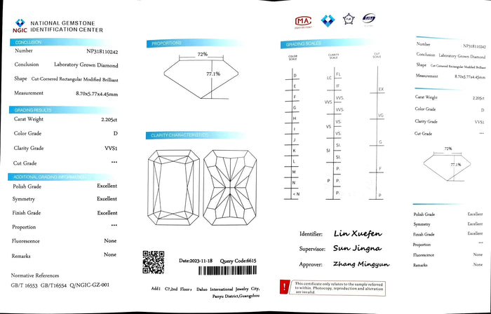 NGIC Certificate #: NP318110242(We will ship the lab-grown diamond to you along with the NGIC certificate. You can scan the barcode on the report to access the third party certificate.)
