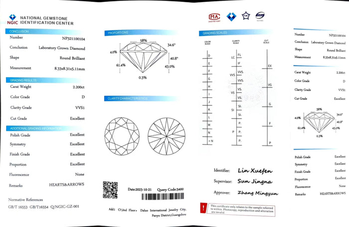 NGIC Certificate #: NP321100104(We will ship the lab-grown diamond to you along with the NGIC certificate. You can scan the barcode on the report to access the third party certificate.)