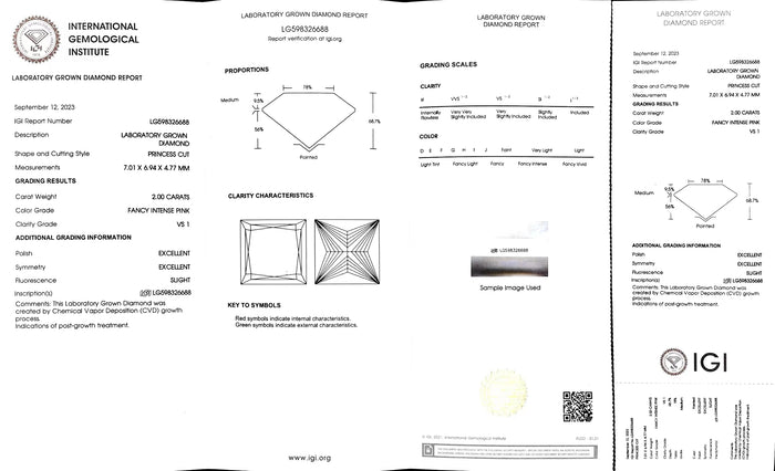 IGI Certificate #: LG598326688(We will ship the lab-grown diamond to you along with the IGI certificate. You can scan the barcode on the report to access the third party certificate.)