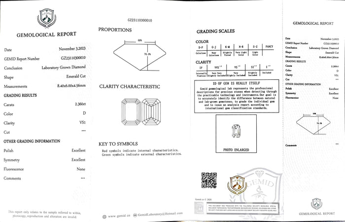 GEMID Certificate #: GZ23110300010(We will ship the lab-grown diamond to you along with the GEMID certificate. You can scan the barcode on the report to access the third party certificate.)