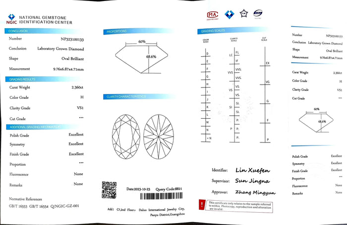NGIC Certificate #: NP323100133(We will ship the lab-grown diamond to you along with the NGIC certificate. You can scan the barcode on the report to access the third party certificate.)