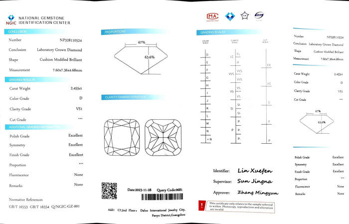 NGIC Certificate #: NP328110524(We will ship the lab-grown diamond to you along with the NGIC certificate. You can scan the barcode on the report to access the third party certificate.)