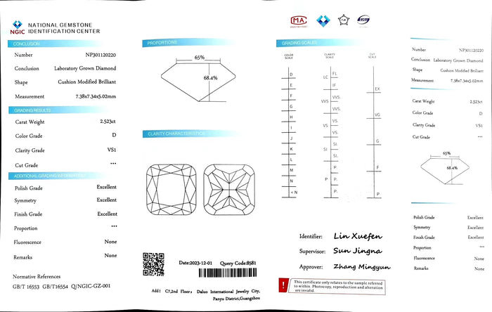 NGIC Certificate #: NP301120220(We will ship the lab-grown diamond to you along with the NGIC certificate. You can scan the barcode on the report to access the third party certificate.)