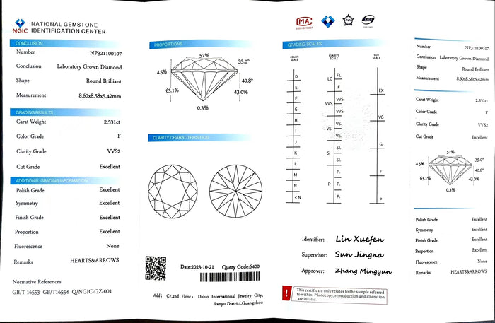 NGIC Certificate #: NP321100107(We will ship the lab-grown diamond to you along with the NGIC certificate. You can scan the barcode on the report to access the third party certificate.)