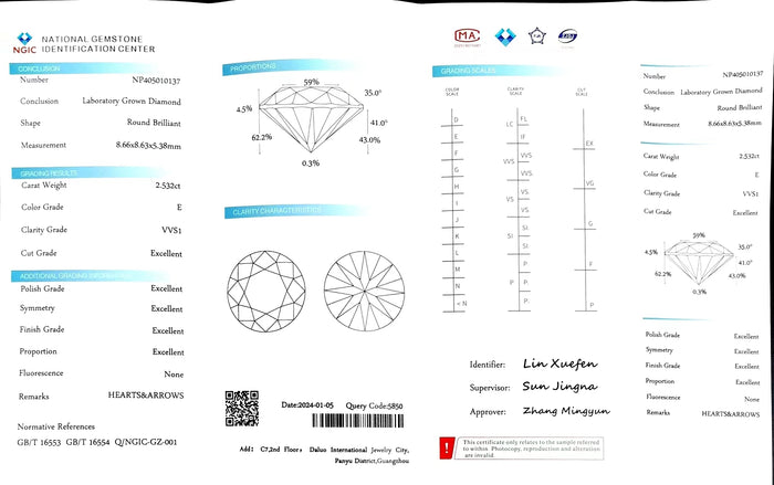 NGIC Certificate #: NP405010137(We will ship the lab-grown diamond to you along with the NGIC certificate. You can scan the barcode on the report to access the third party certificate.)