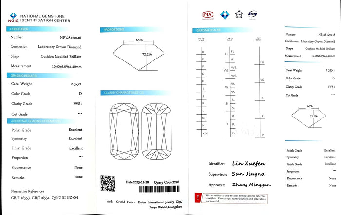 NGIC Certificate #: NP328120148(We will ship the lab-grown diamond to you along with the NGIC certificate. You can scan the barcode on the report to access the third party certificate.)