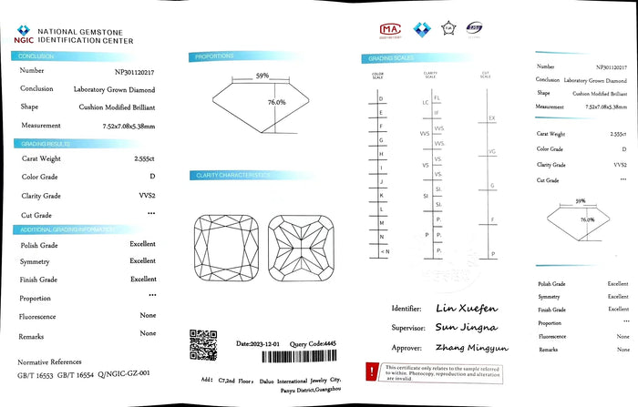 NGIC Certificate #: NP301120217(We will ship the lab-grown diamond to you along with the NGIC certificate. You can scan the barcode on the report to access the third party certificate.)