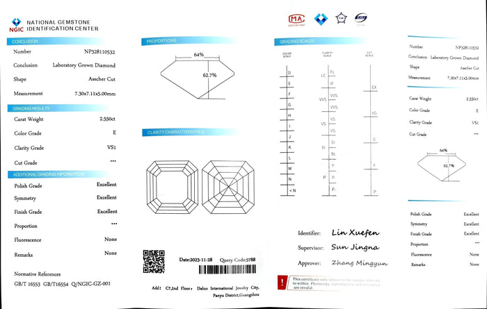 NGIC Certificate #: NP328110532(We will ship the lab-grown diamond to you along with the NGIC certificate. You can scan the barcode on the report to access the third party certificate.)