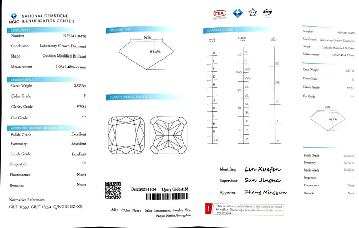 NGIC Certificate #:NP324110470(We will ship the lab-grown diamond to you along with the NGIC certificate. You can scan the barcode on the report to access the third party certificate.)
