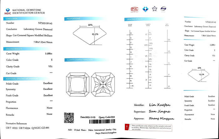 NGIC Certificate #:NP325120145(We will ship the lab-grown diamond to you along with the NGIC certificate. You can scan the barcode on the report to access the third party certificate.)