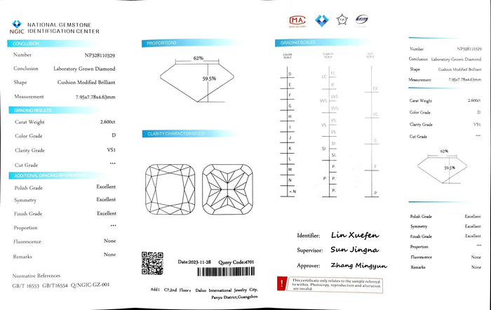 NGIC Certificate #: NP328110329(We will ship the lab-grown diamond to you along with the NGIC certificate. You can scan the barcode on the report to access the third party certificate.)