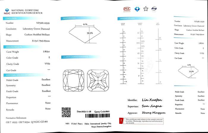 NGIC Certificate #: NP328110529(We will ship the lab-grown diamond to you along with the NGIC certificate. You can scan the barcode on the report to access the third party certificate.)