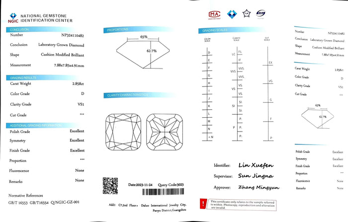 NGIC Certificate #:NP324110482(We will ship the lab-grown diamond to you along with the NGIC certificate. You can scan the barcode on the report to access the third party certificate.)