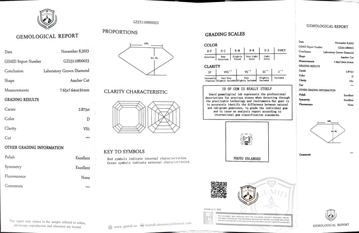 GEMID Certificate #: GZ23110800023(We will ship the lab-grown diamond to you along with the GEMID certificate. You can scan the barcode on the report to access the third party certificate.)