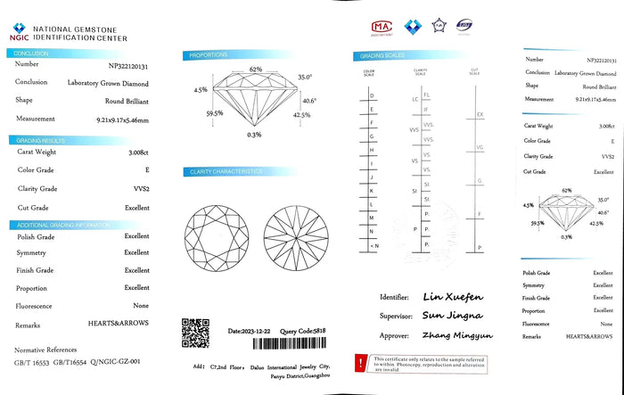 NGIC Certificate #: NP322120131(We will ship the lab-grown diamond to you along with the NGIC certificate. You can scan the barcode on the report to access the third party certificate.)