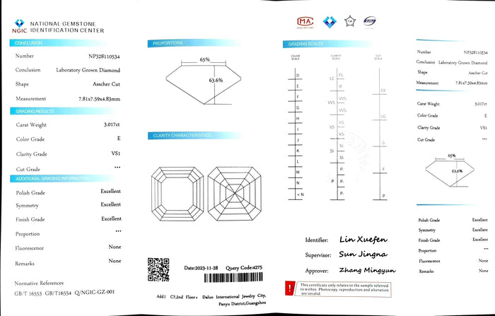 NGIC Certificate #: NP328110534(We will ship the lab-grown diamond to you along with the NGIC certificate. You can scan the barcode on the report to access the third party certificate.)