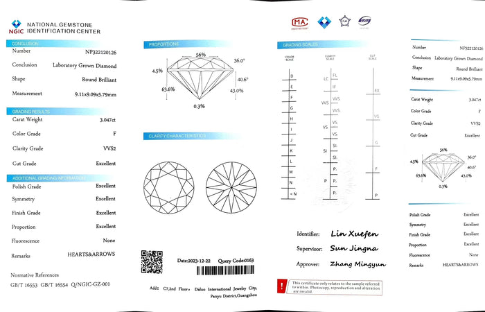 NGIC Certificate #: NP322120126(We will ship the lab-grown diamond to you along with the NGIC certificate. You can scan the barcode on the report to access the third party certificate.)