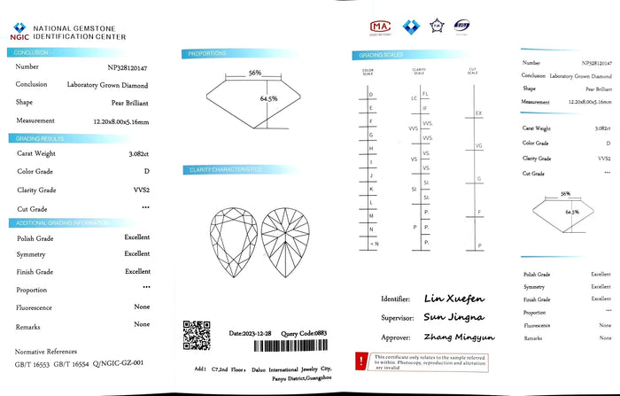 NGIC Certificate #: NP328120147(We will ship the lab-grown diamond to you along with the NGIC certificate. You can scan the barcode on the report to access the third party certificate.)