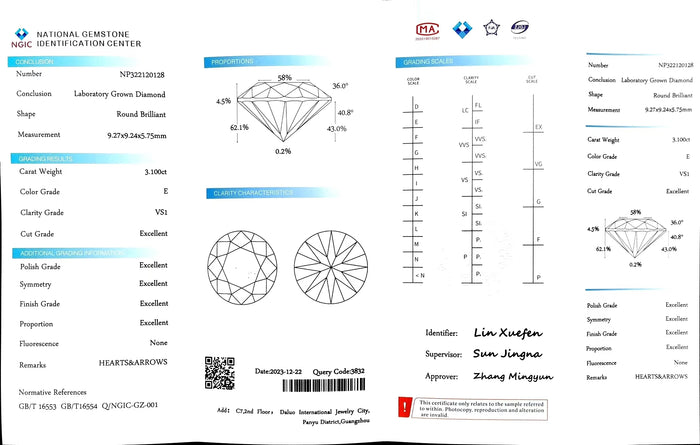 NGIC Certificate #: NP322120128(We will ship the lab-grown diamond to you along with the NGIC certificate. You can scan the barcode on the report to access the third party certificate.)