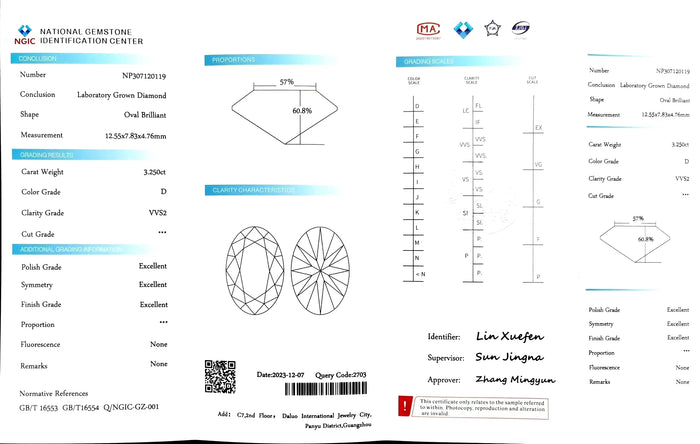 NGIC Certificate #: NP307120119(We will ship the lab-grown diamond to you along with the NGIC certificate. You can scan the barcode on the report to access the third party certificate.)