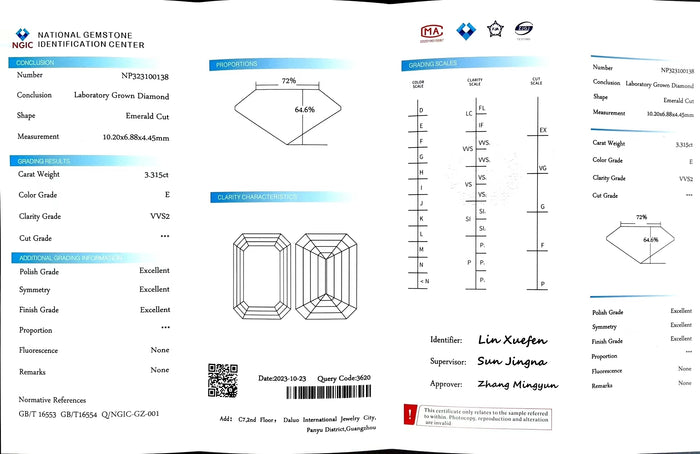 NGIC Certificate #: NP323100138(We will ship the lab-grown diamond to you along with the NGIC certificate. You can scan the barcode on the report to access the third party certificate.)