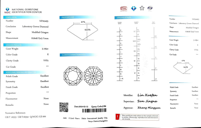 NGIC Certificate #: NPA0493(We will ship the lab-grown diamond to you along with the NGIC certificate. You can scan the barcode on the report to access the third party certificate.)