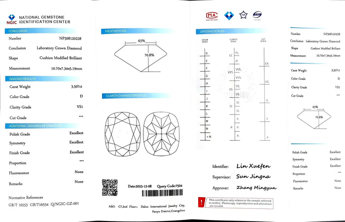 NGIC Certificate #: NP308120228(We will ship the lab-grown diamond to you along with the NGIC certificate. You can scan the barcode on the report to access the third party certificate.)