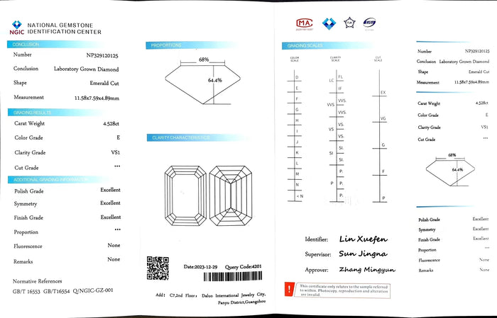 NGIC Certificate #: NP329120125(We will ship the lab-grown diamond to you along with the NGIC certificate. You can scan the barcode on the report to access the third party certificate.)