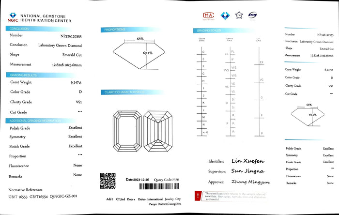 NGIC Certificate #: NP326120355(We will ship the lab-grown diamond to you along with the NGIC certificate. You can scan the barcode on the report to access the third party certificate.)