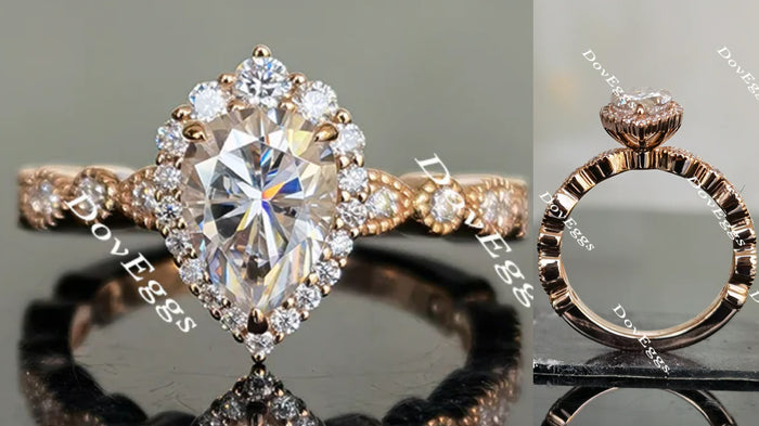 Doveggs art deco halo pear moissanite engagement engagement ring